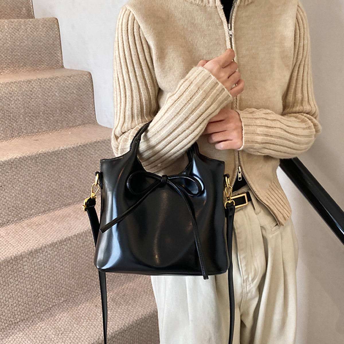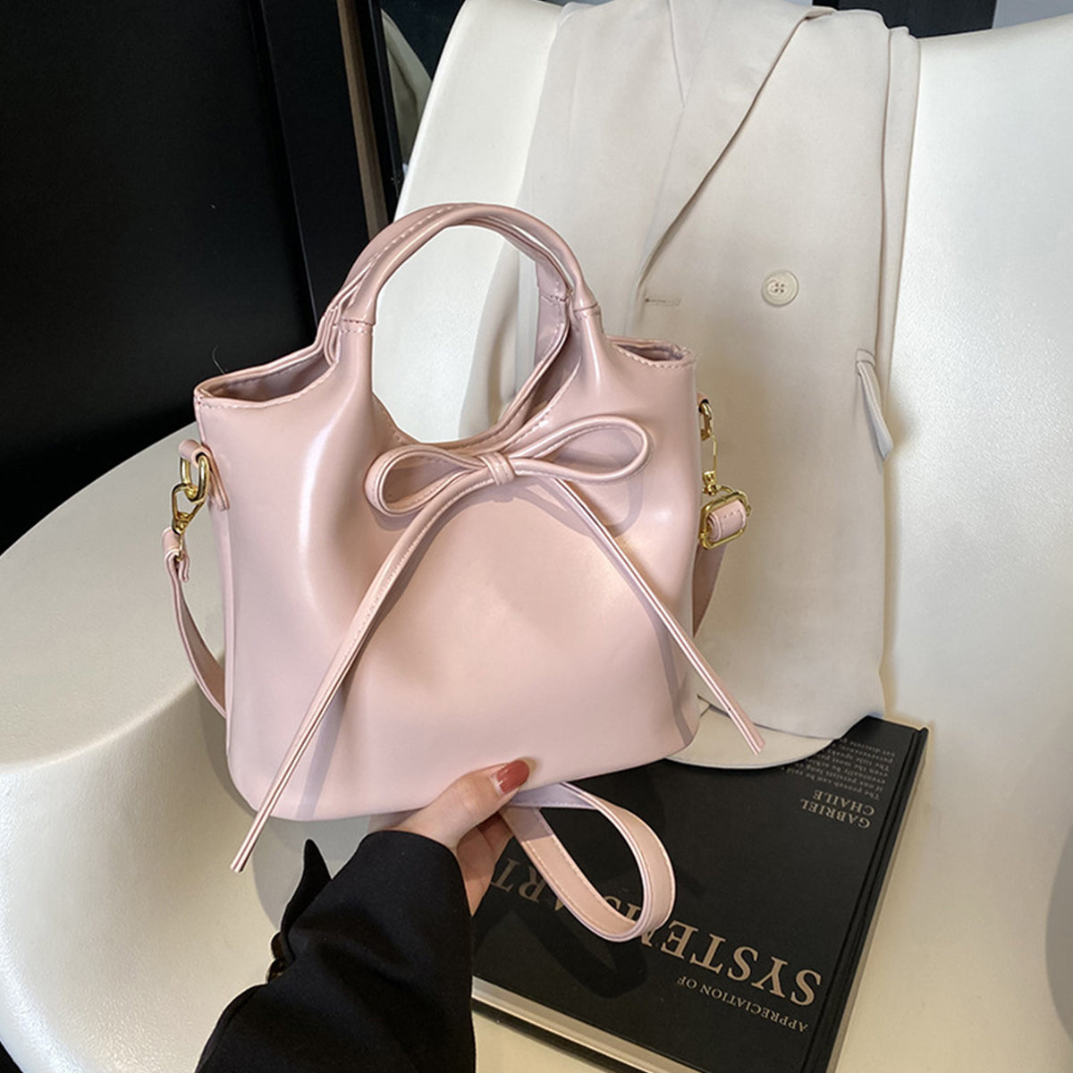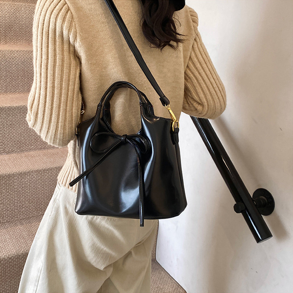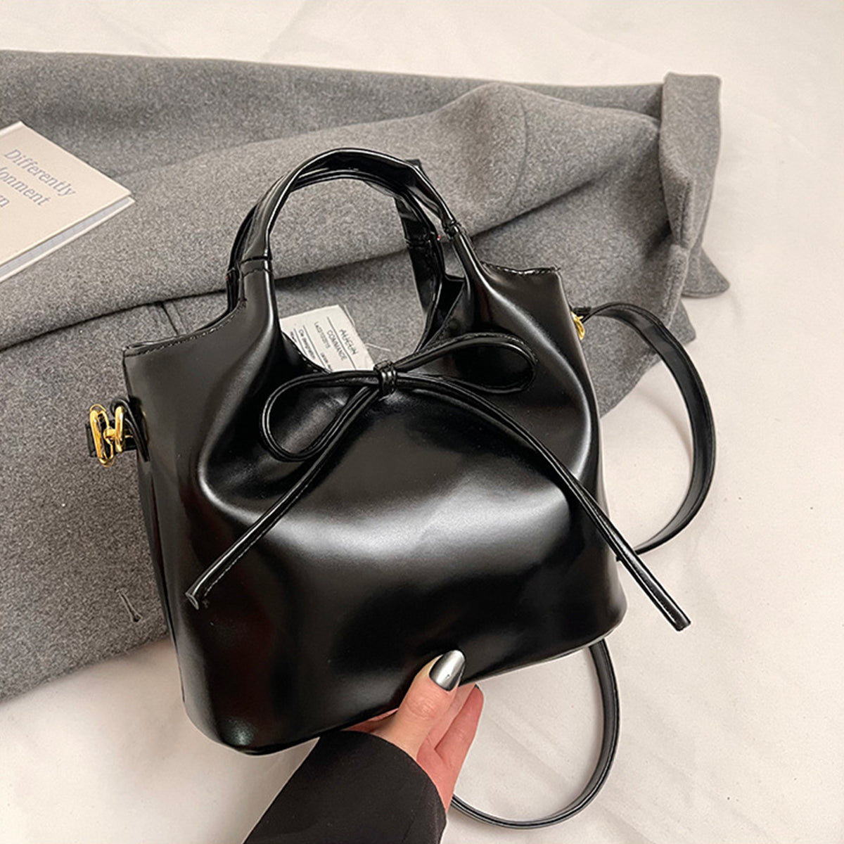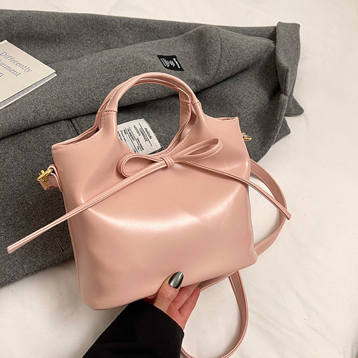 Ballet Style Handbag Bow Bucket Bag