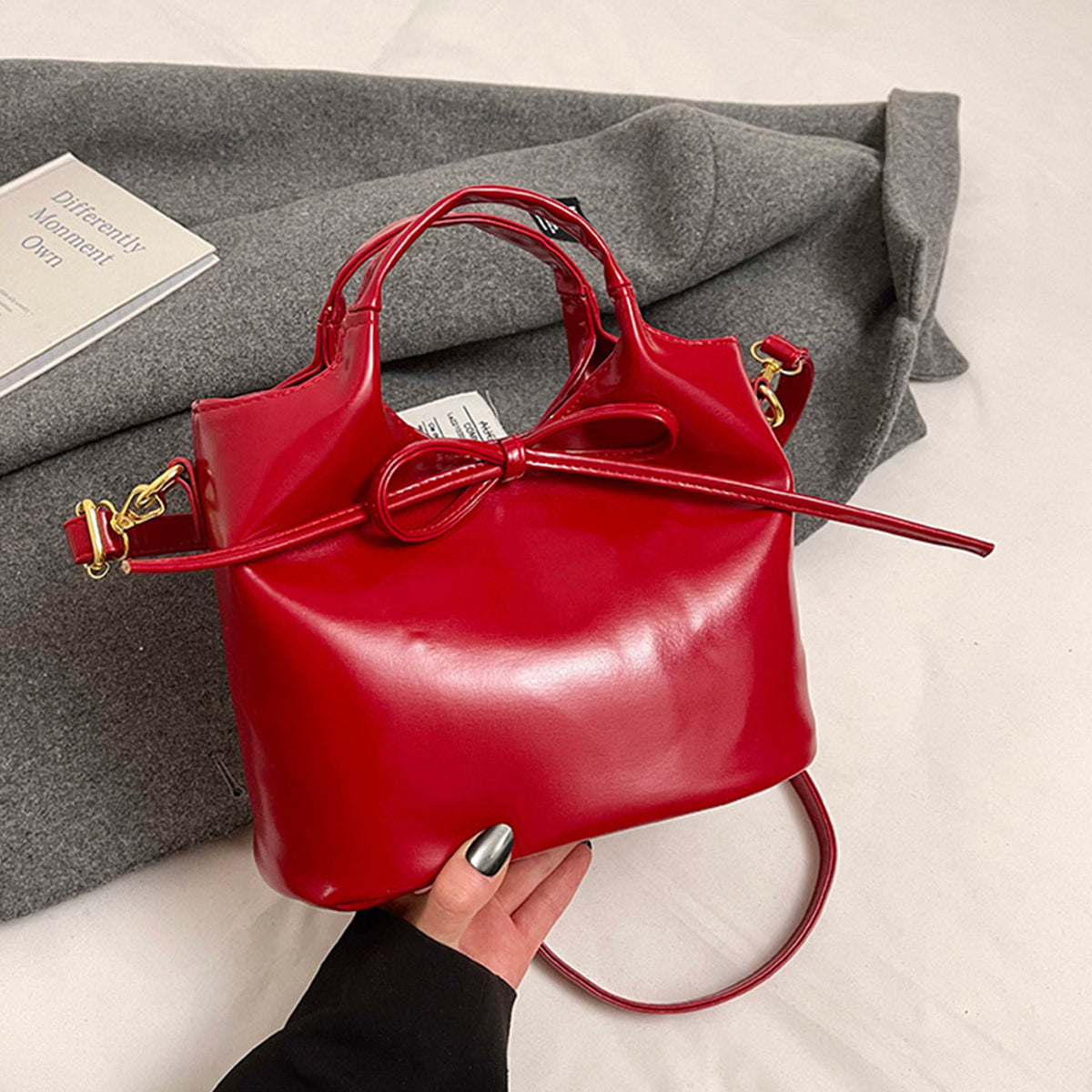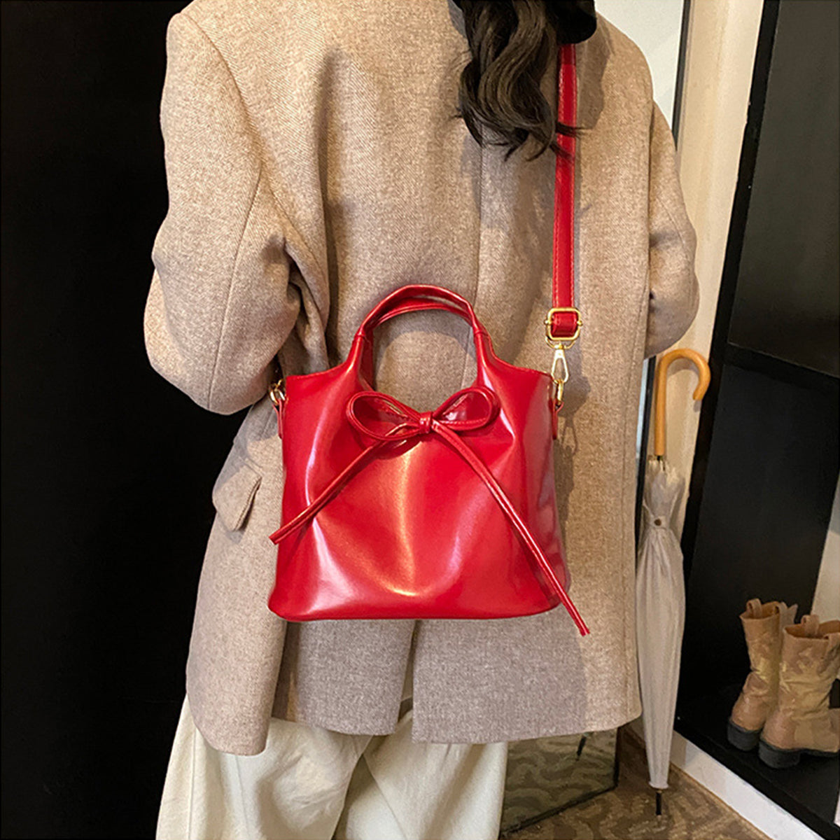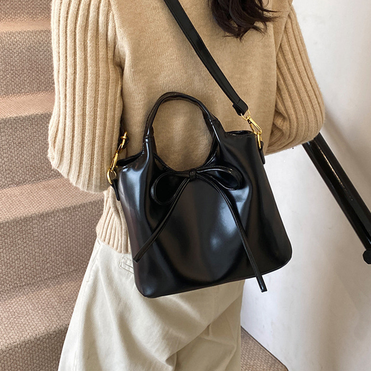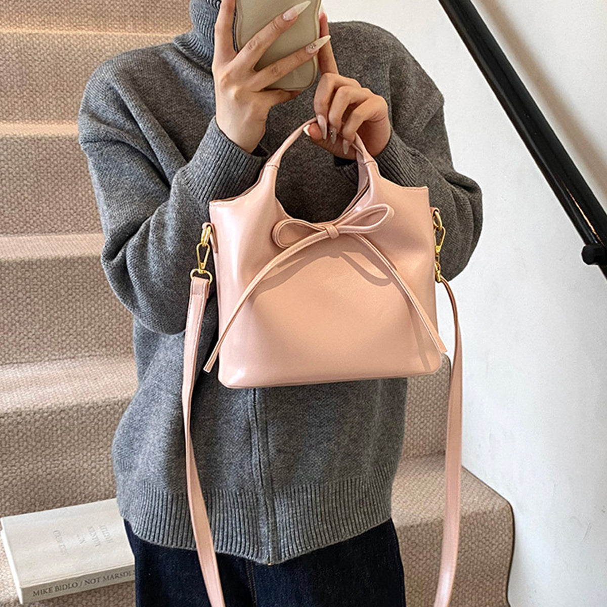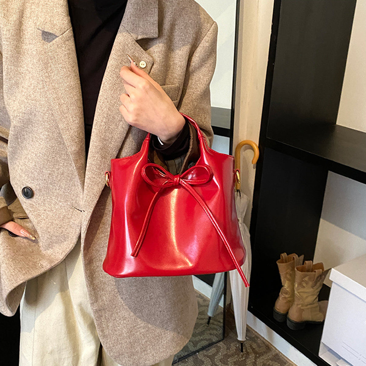 Ballet Style Handbag Bow Bucket Bag