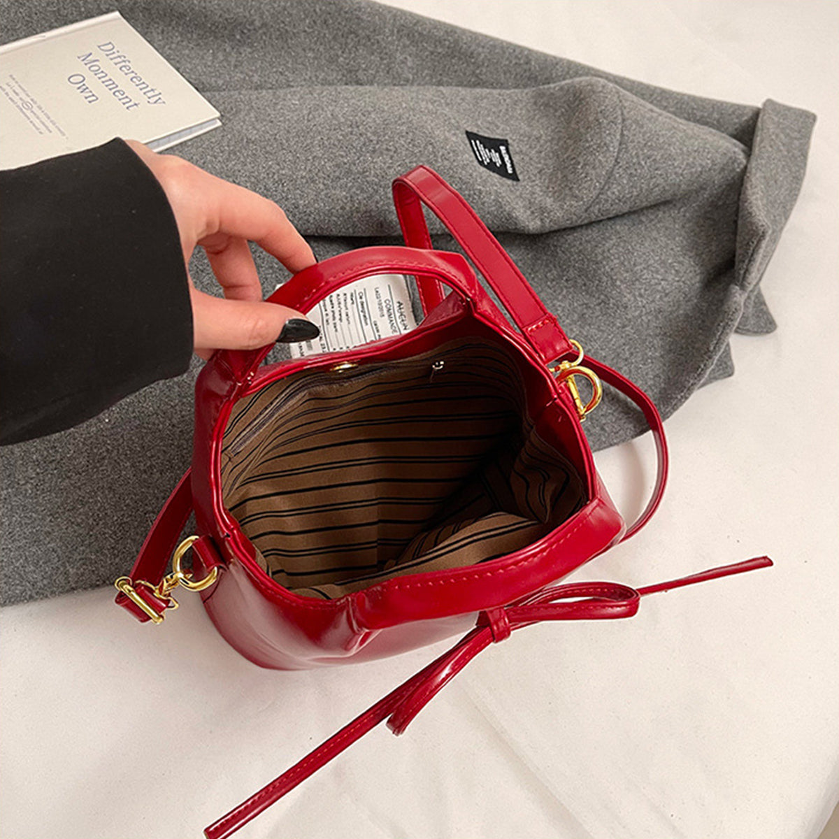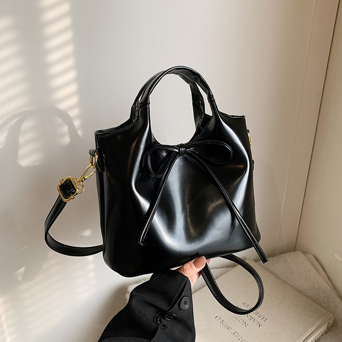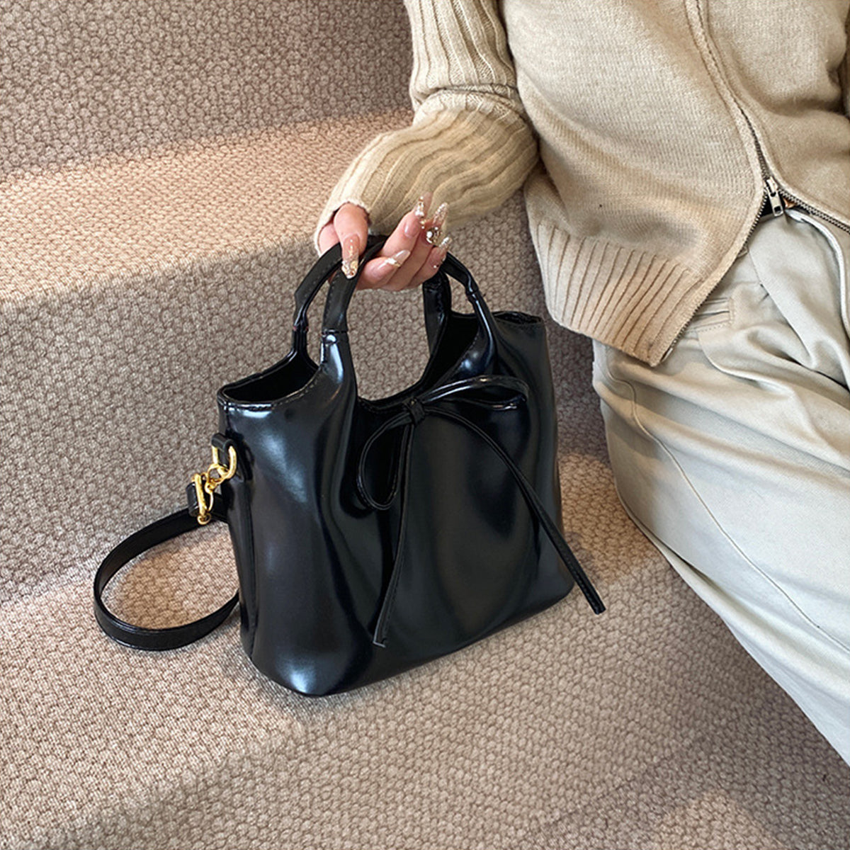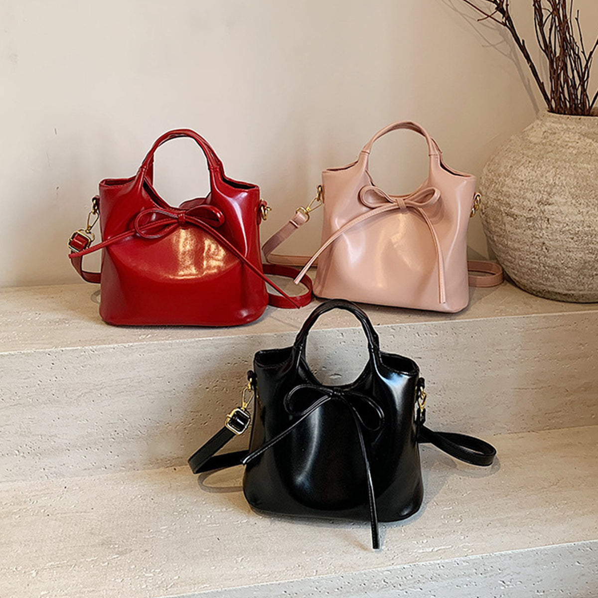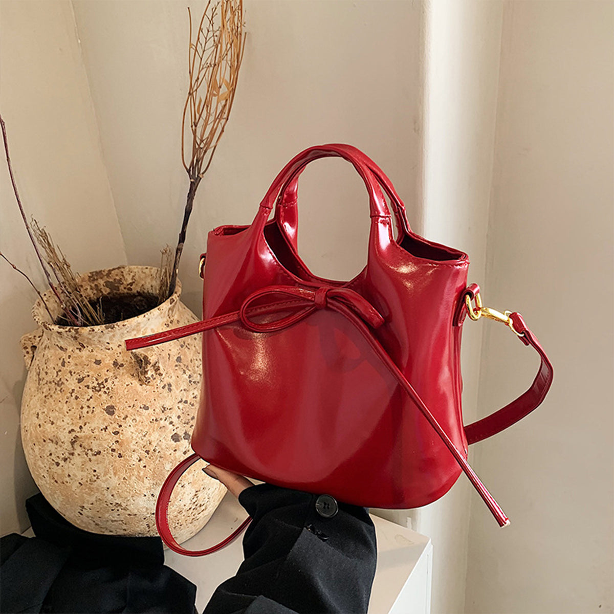 Ballet Style Handbag Bow Bucket Bag