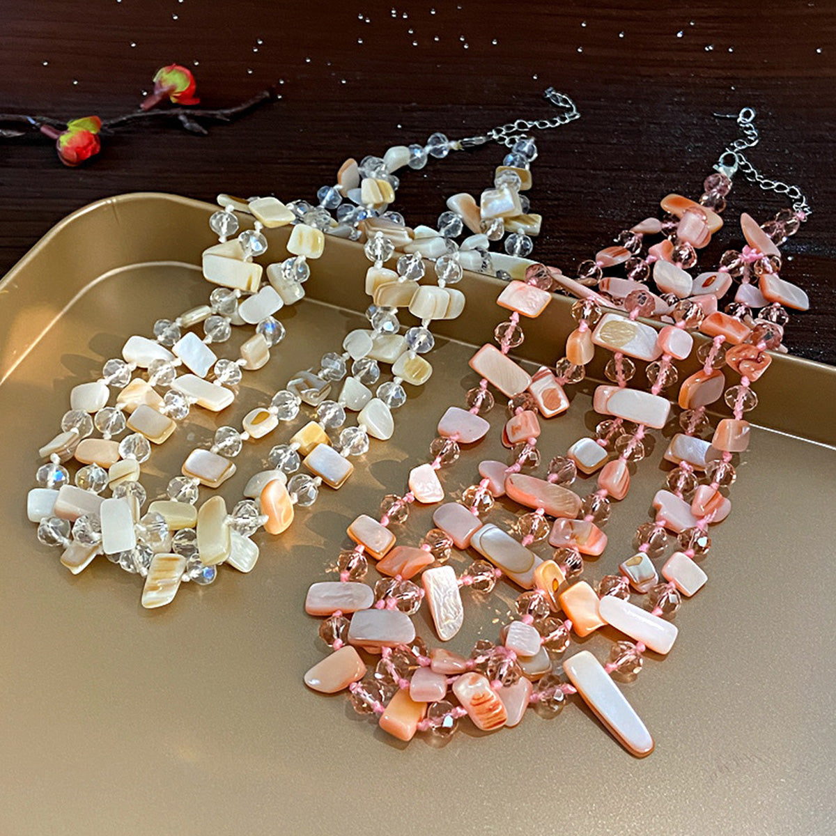 Personalized Three-Layer Shell Crystal Beaded Necklace