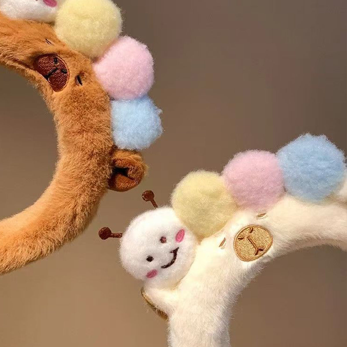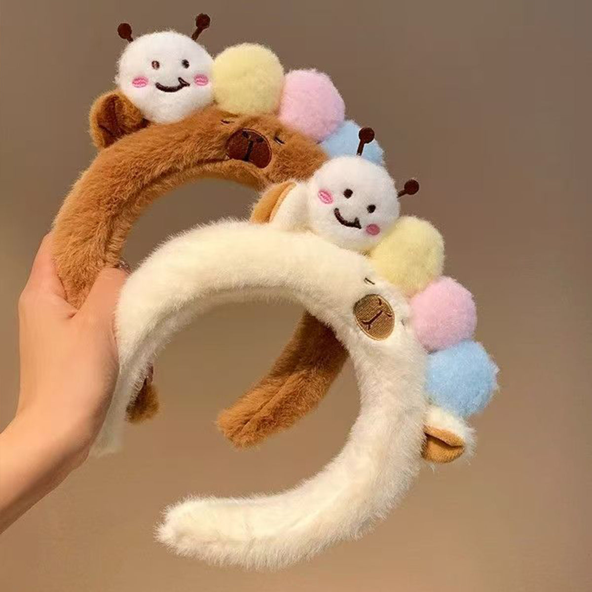 Cute caterpillar wide-brimmed face-washing headband autumn and winter cartoon funny capybara plush headband female capybara hair accessories