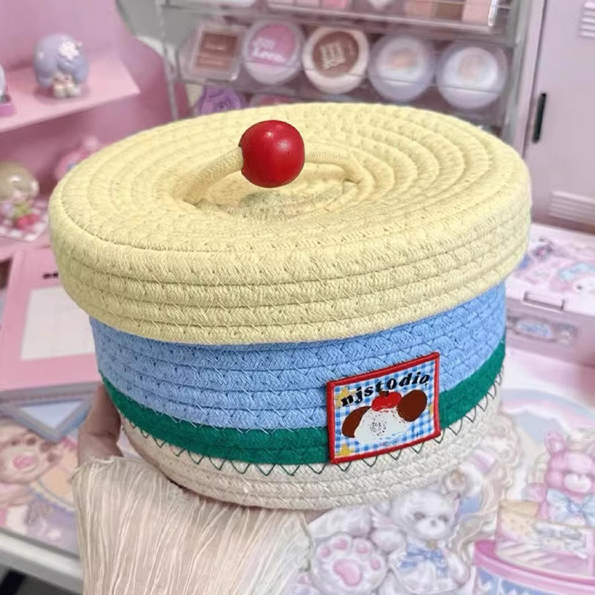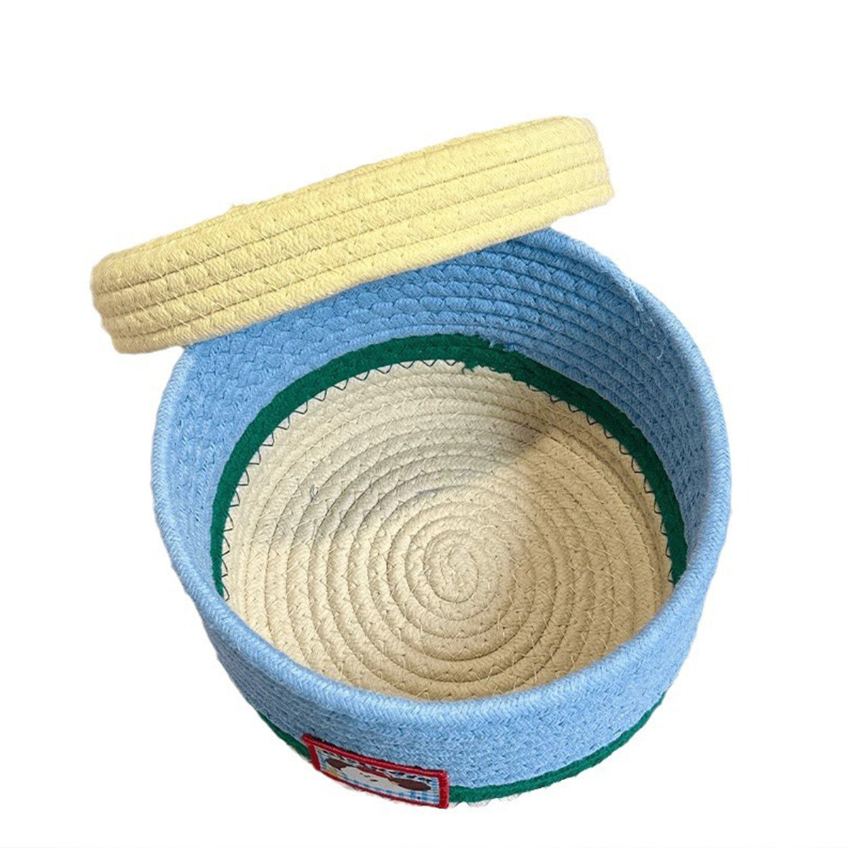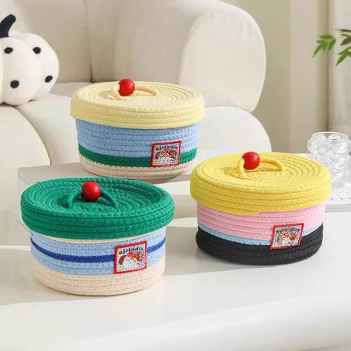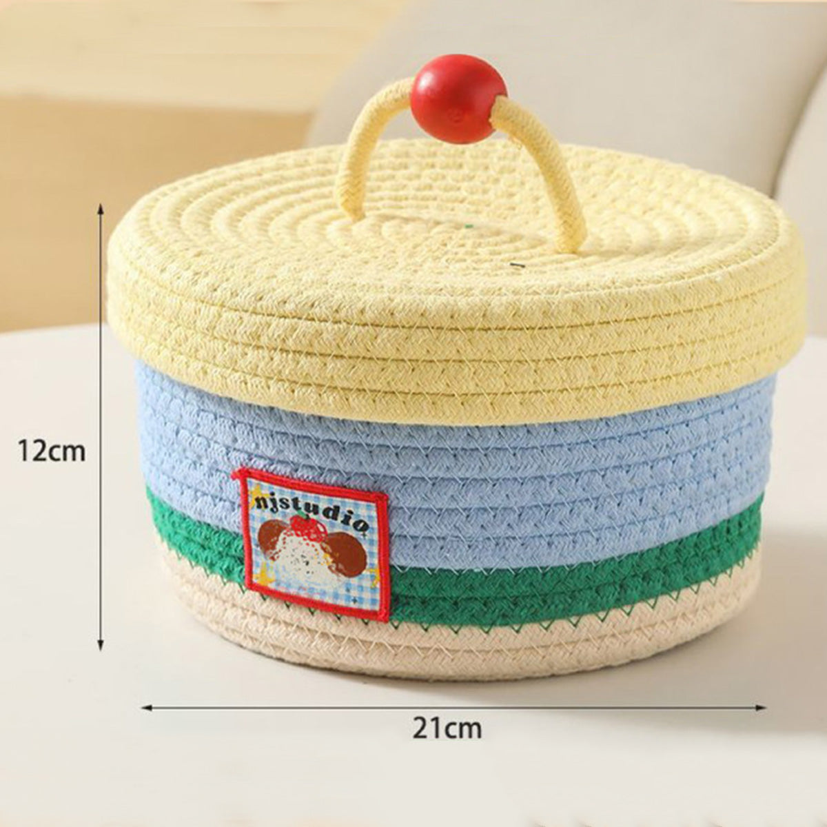 Desktop woven storage basket dopamine cute cartoon storage box cosmetics with lid dormitory sundries snack basket