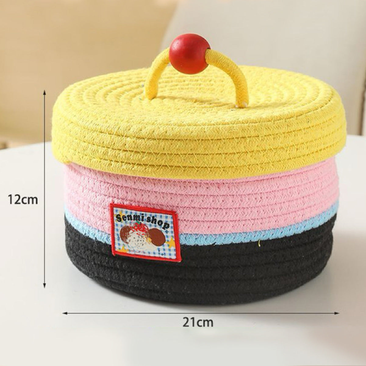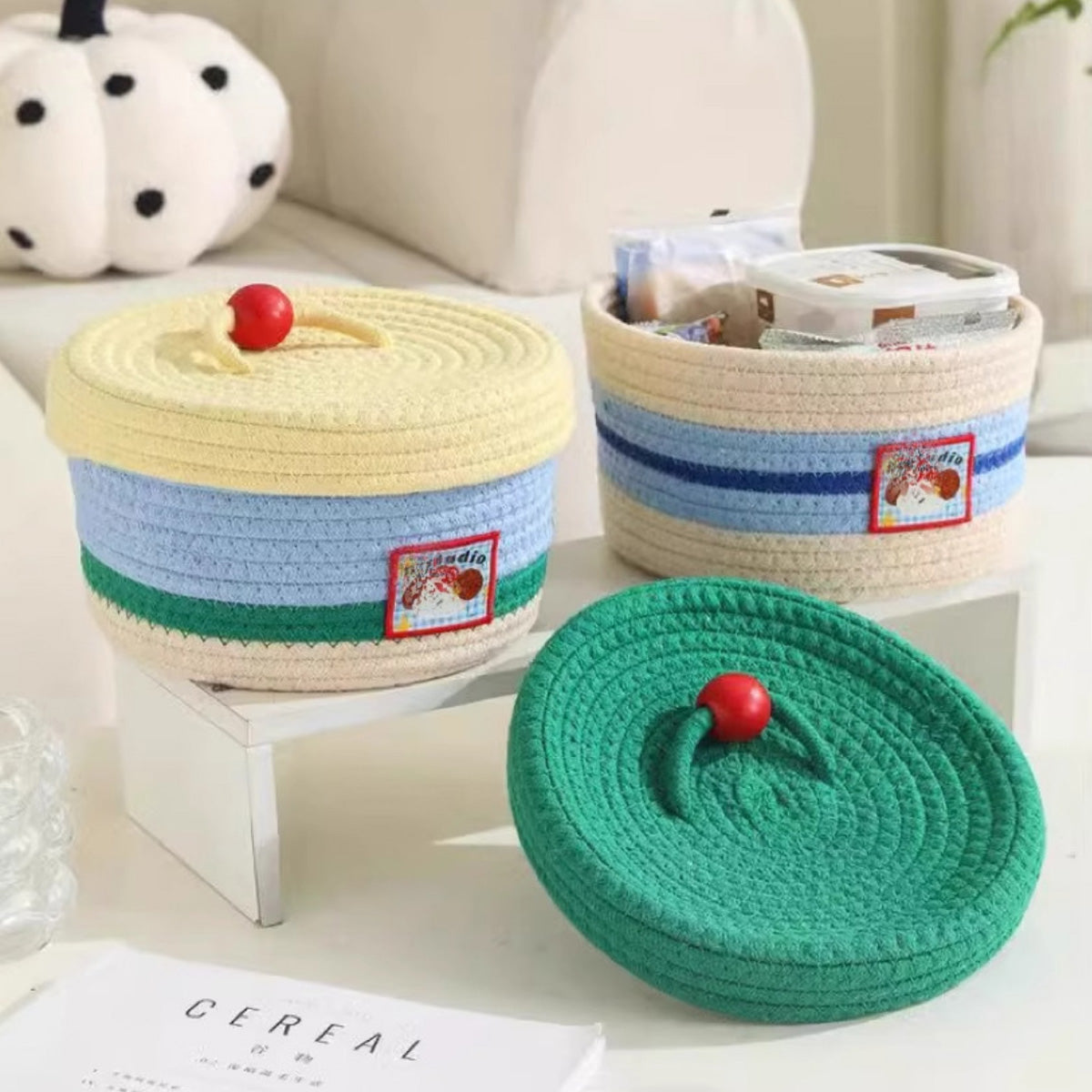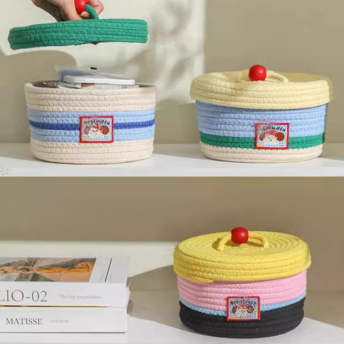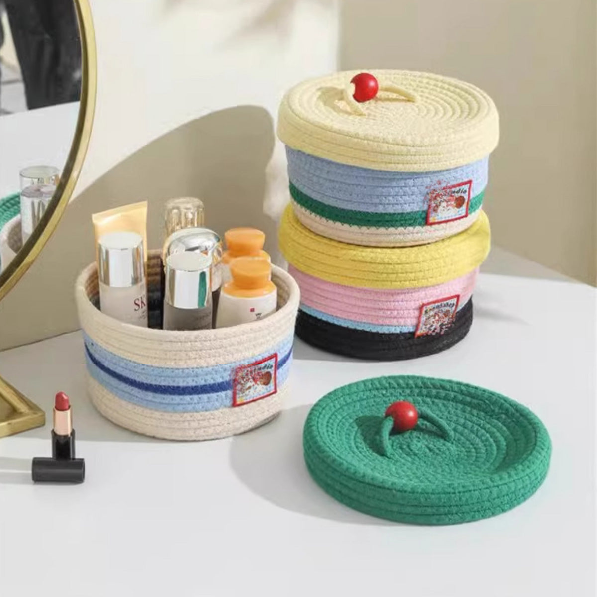Desktop woven storage basket dopamine cute cartoon storage box cosmetics with lid dormitory sundries snack basket