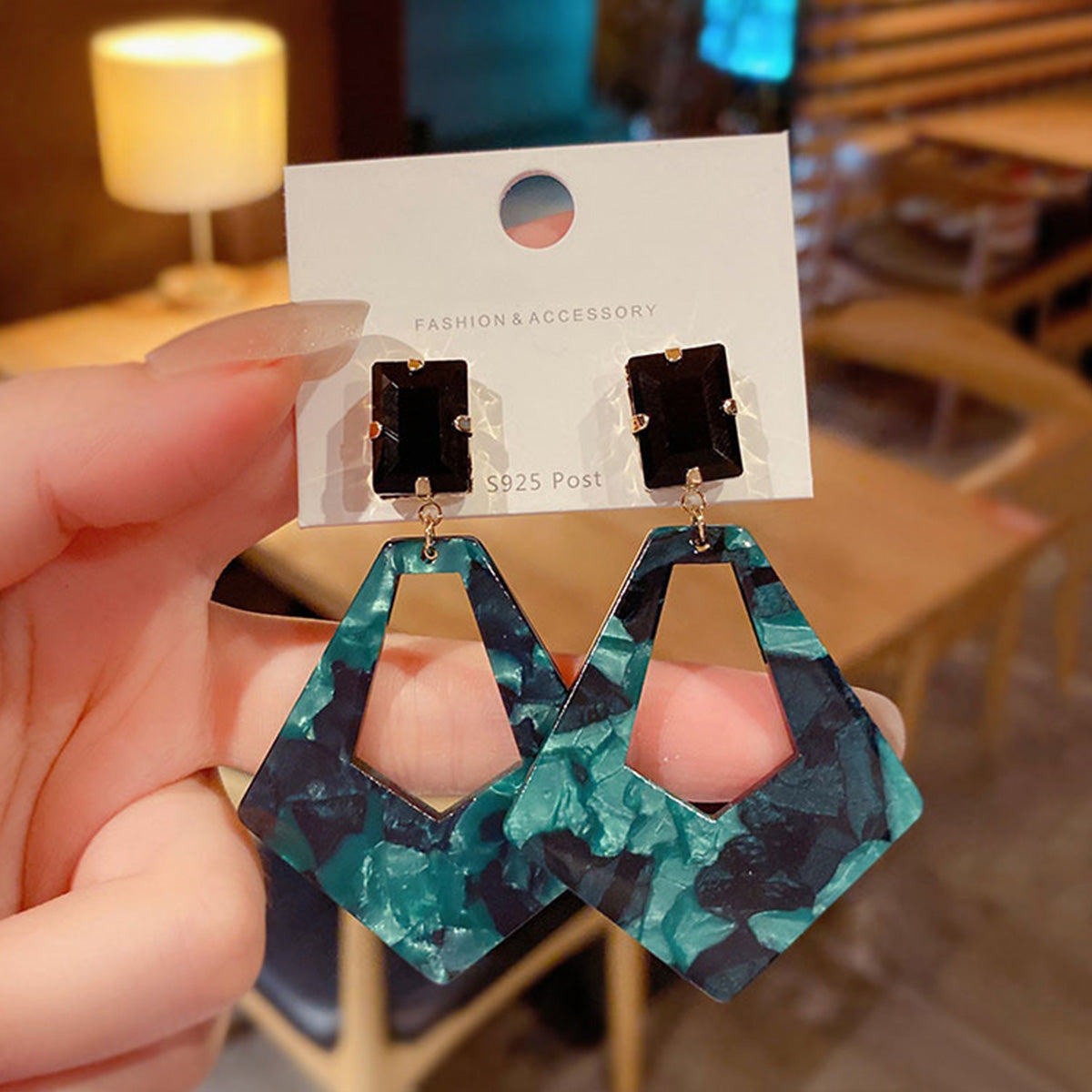 Korean fashion retro exaggerated internet celebrity temperament earrings S925 silver needle green acrylic diamond geometric earrings trend