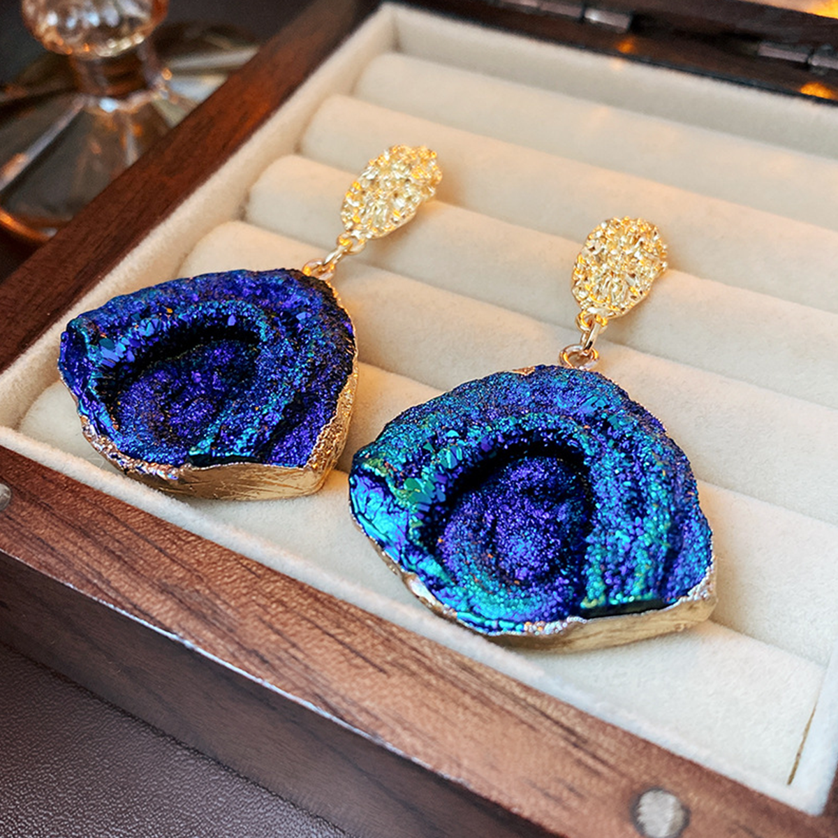 Silver needle wrinkled blue irregular metal earrings, temperament and personality earrings, light luxury and high-end earrings, manufacturers and wholesale