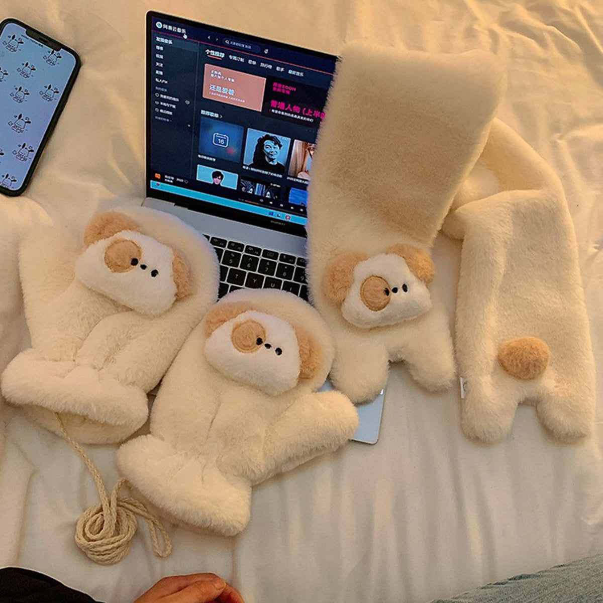 Cute Puppy Plush Scarf Short Cartoon Scarf Gloves