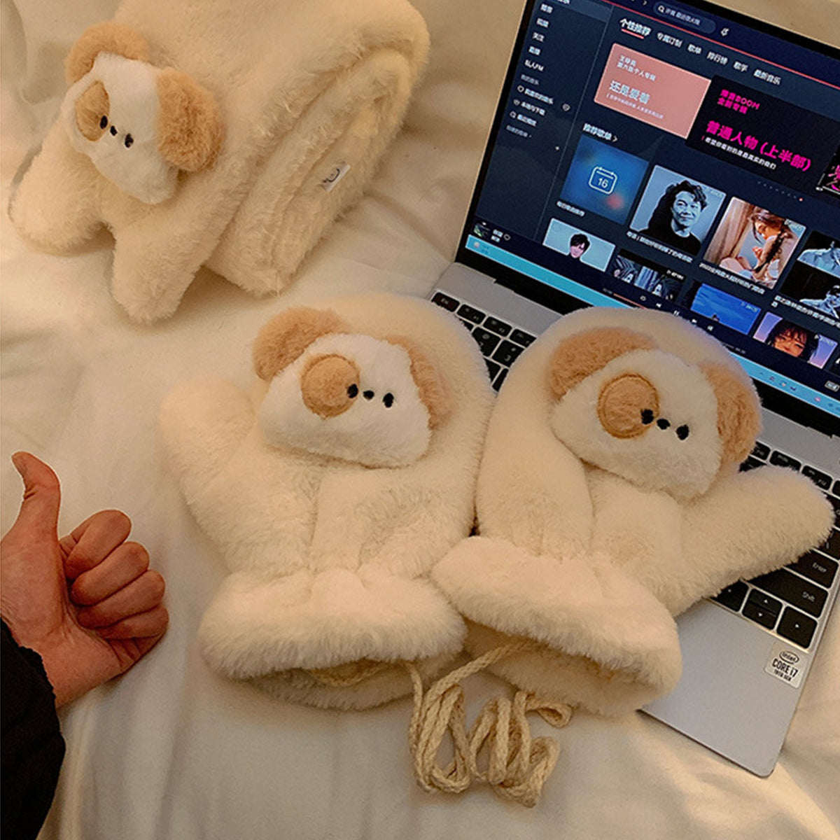 New cute puppy plush scarf for girls in winter Korean style warm short cartoon neck glove