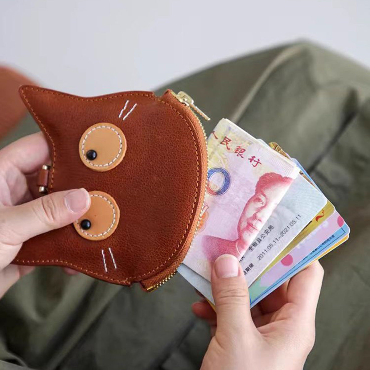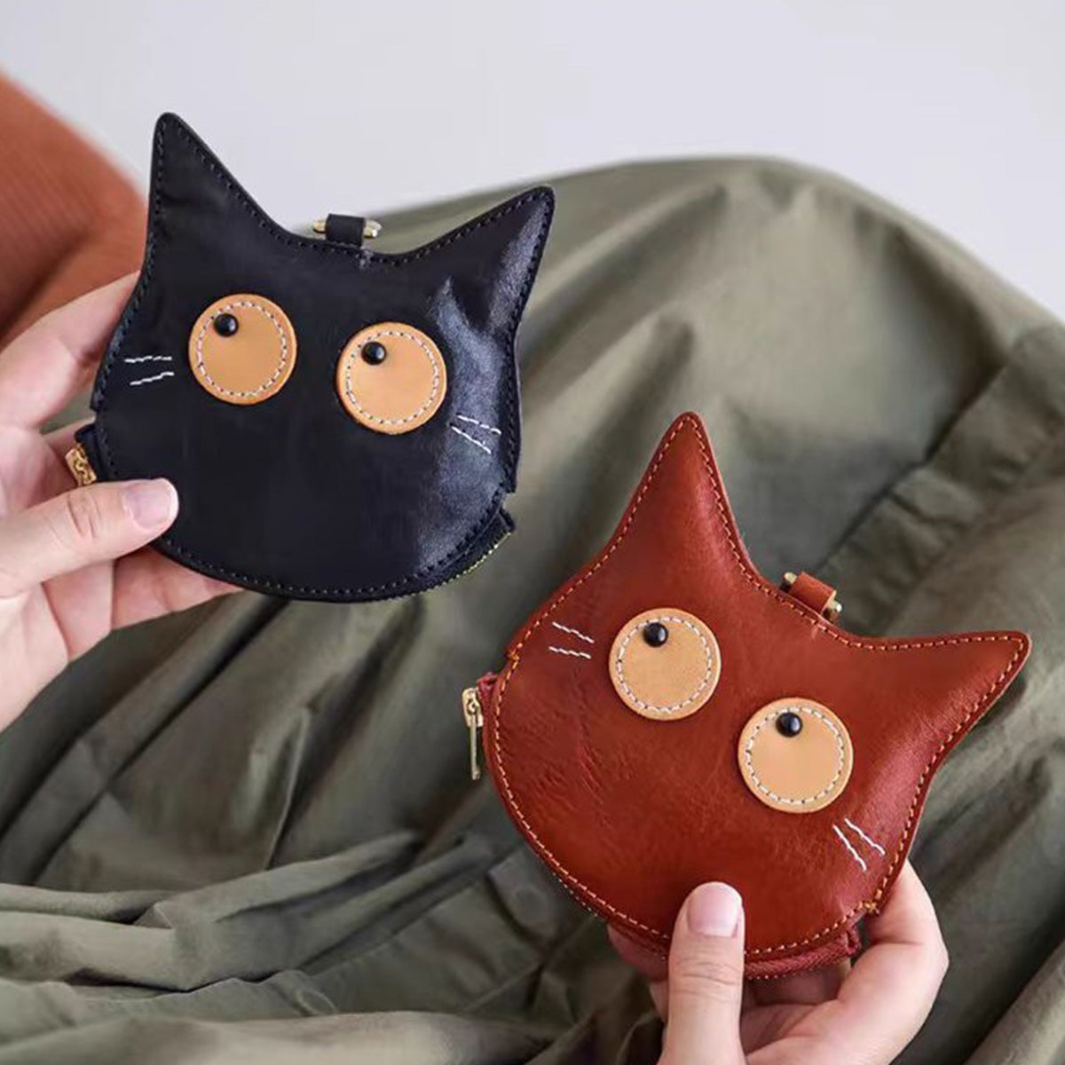 Retro ladies' coin purse, neck hanging necklace bag, cartoon cat cute hanging bag, earphones, coins, mini ultra-thin card holder