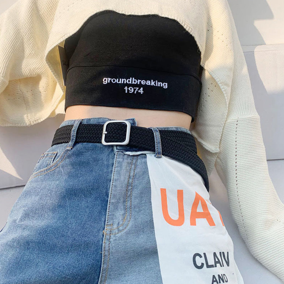 Canvas braided belt for women, elastic belt for men and women, Korean style, versatile, casual, pin buckle belt for female students