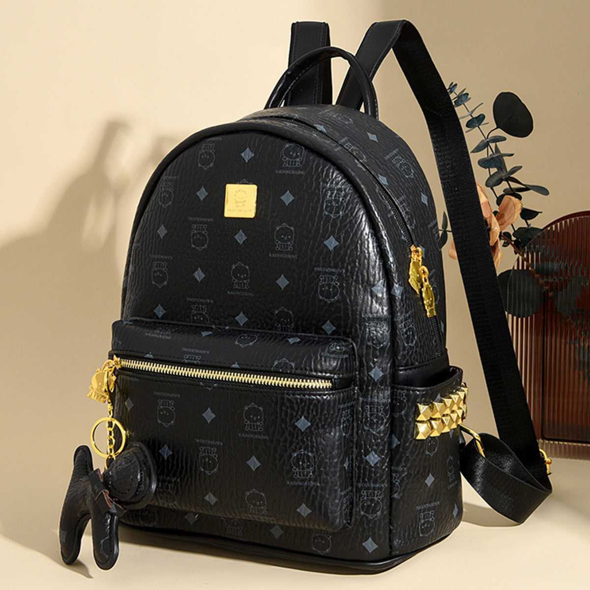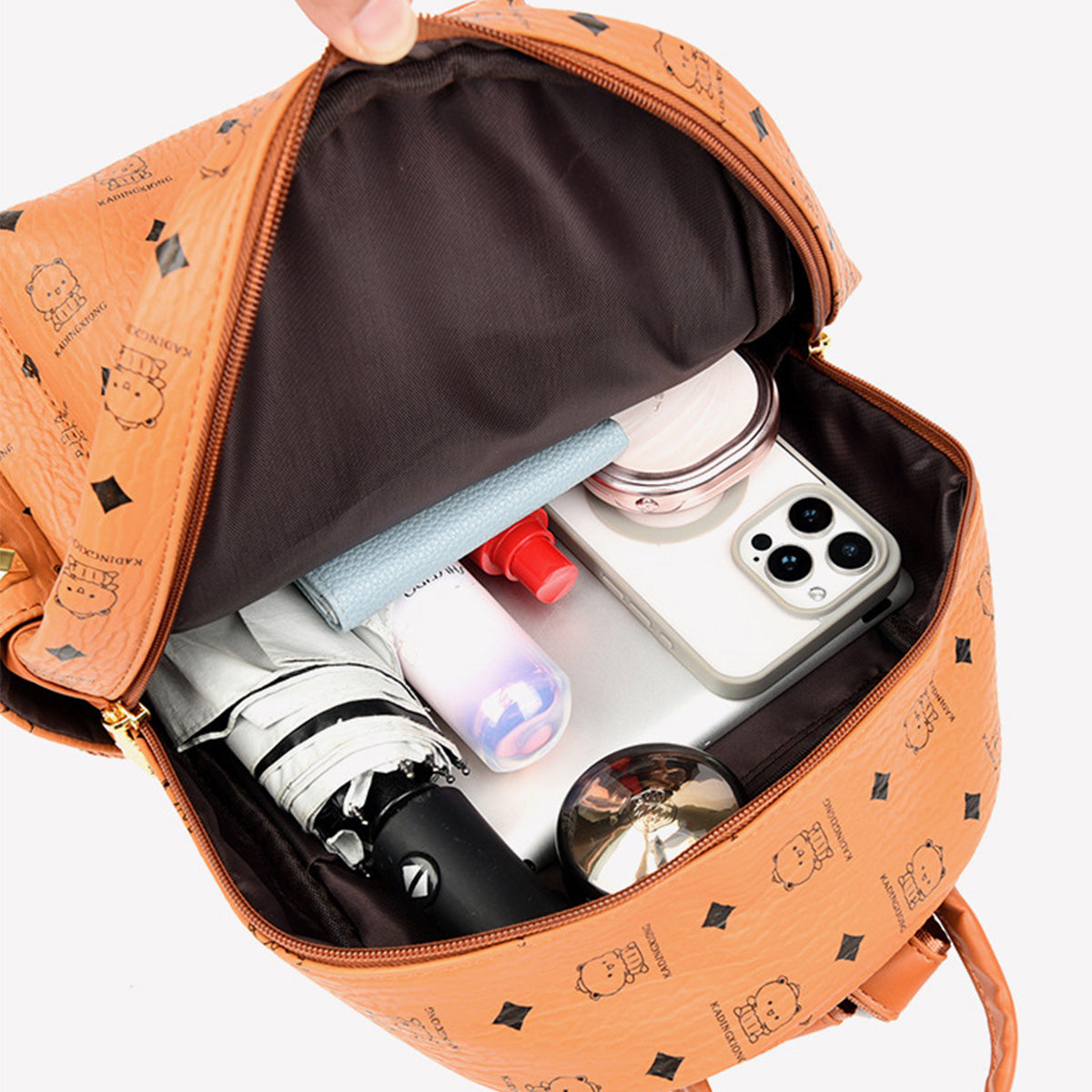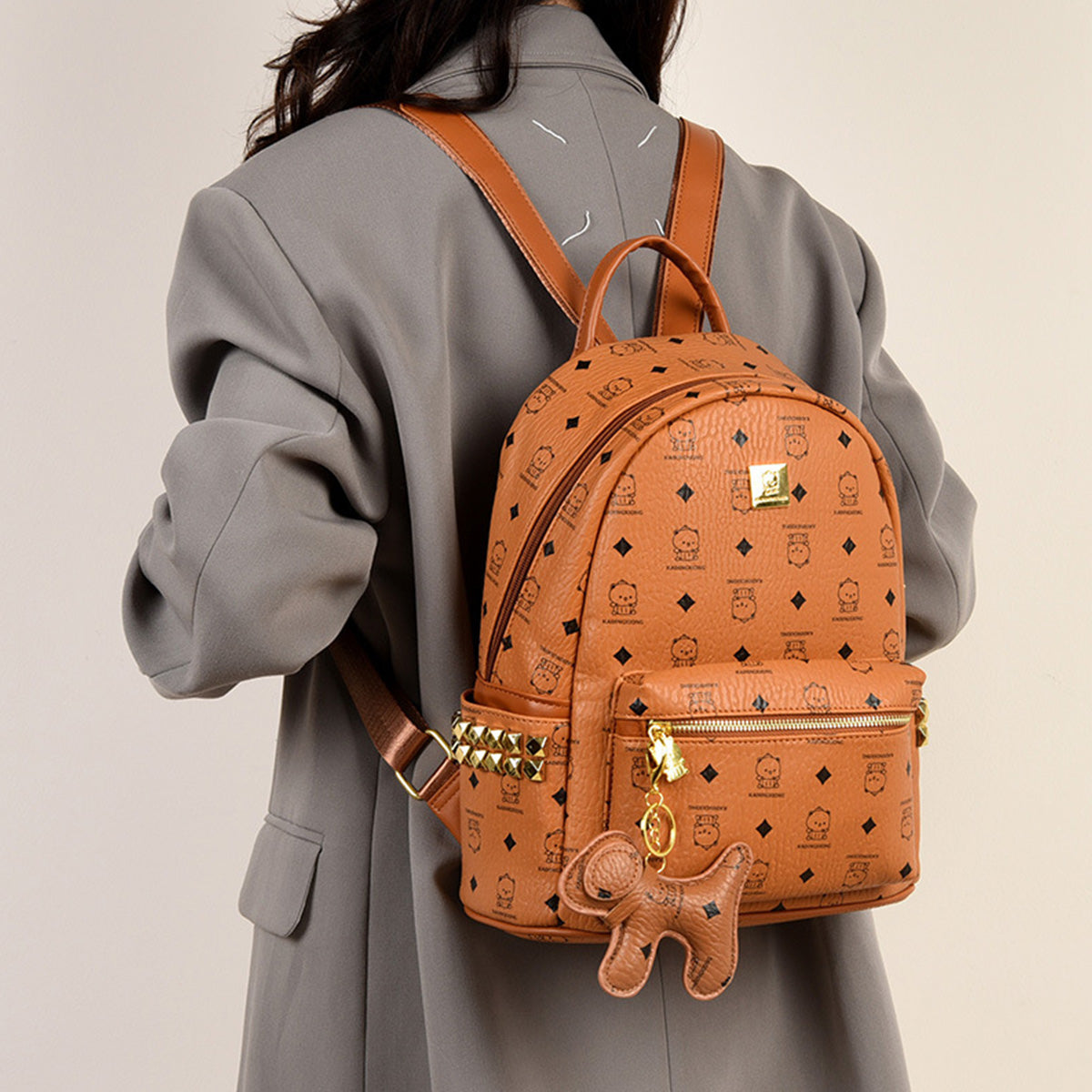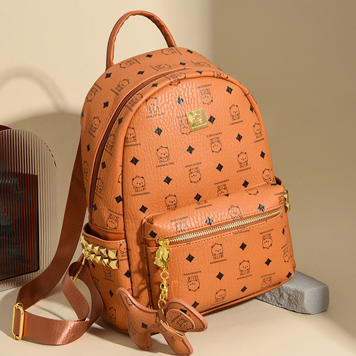 Wholesale and retail Bear backpack for men and women Korean style fashion PU retro classic printed backpack multi-purpose girls backpack