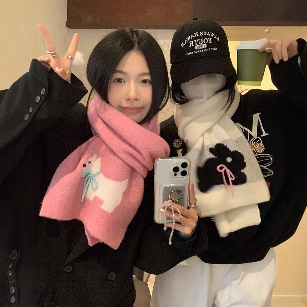 Bowknot Japanese style puppy tie knitted scarf for women 2024 winter new style warm student scarf solid color all-match