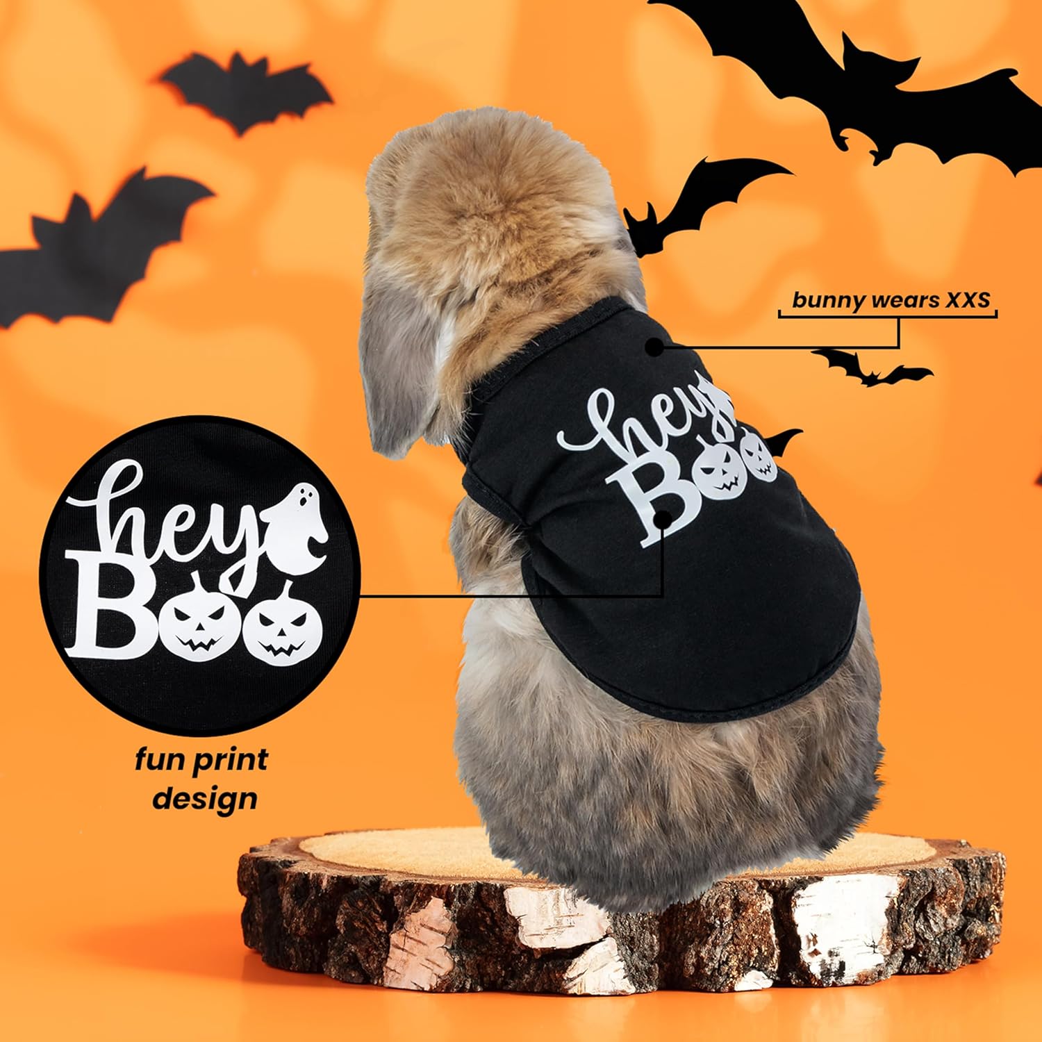 Halloween Small Animal Costume: This pet costume set is designed for Halloween, including two pieces of clothing with different color patterns, one is an orange vest with "TOO CUTE TO SPOOK" printed on it, and the other is a black vest with "hey, BOO" printed on it. You can use it to add to the festive atmosphere and take festive photos.