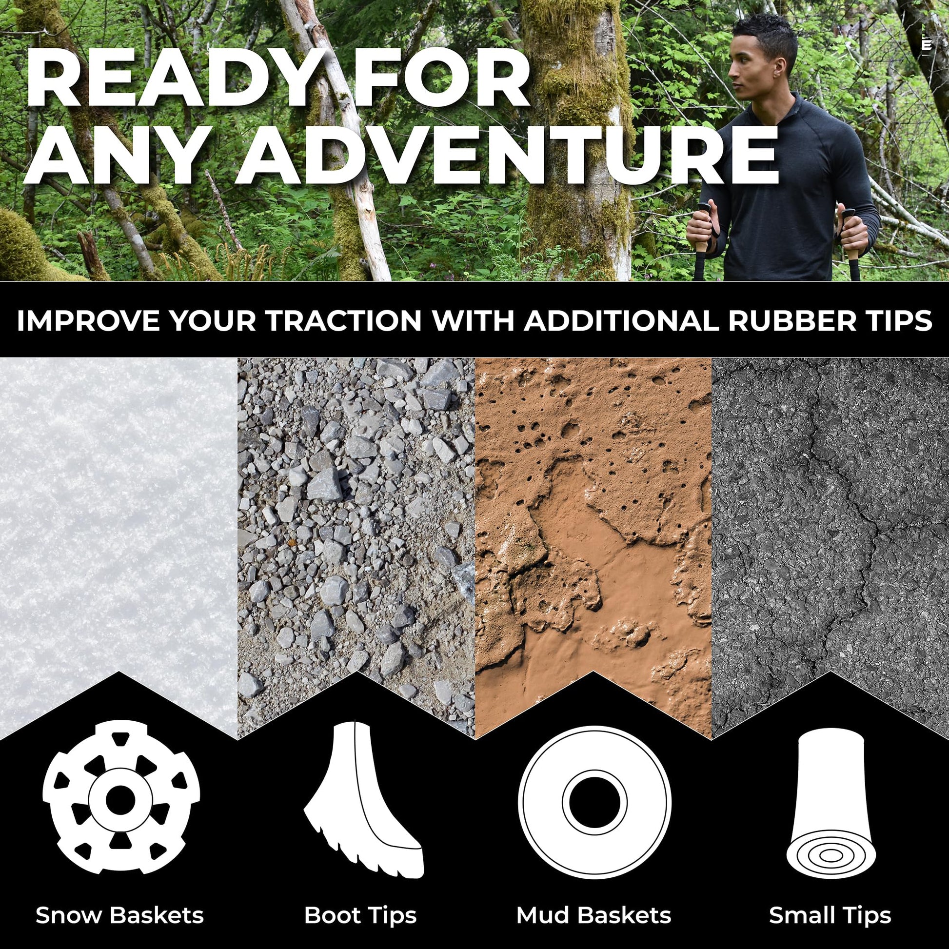 LAPOLAR Lightweight Aircraft-Grade Aluminum Alpenstocks with Extended Down Grip Plus Tip Kit