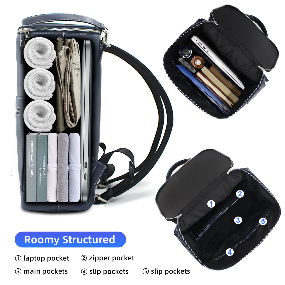- Comfy&sturdy:Large softness backpack has been designed with beauty and practicality in mind. the extra-large riged fuselage-style body of the bag has an extra large capacity and is lined with padded black leather, Removable carry handle on top, whilst the extra-wide padded straps make the backpack extremely comfortable to wear.