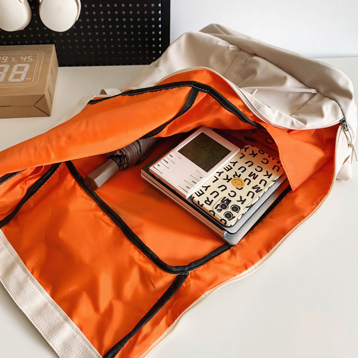 Water-repellent fabric, shoulder anti-slip buckle, front zipper pocket, smooth zipper, front patch pocket, socket design, hand-held design