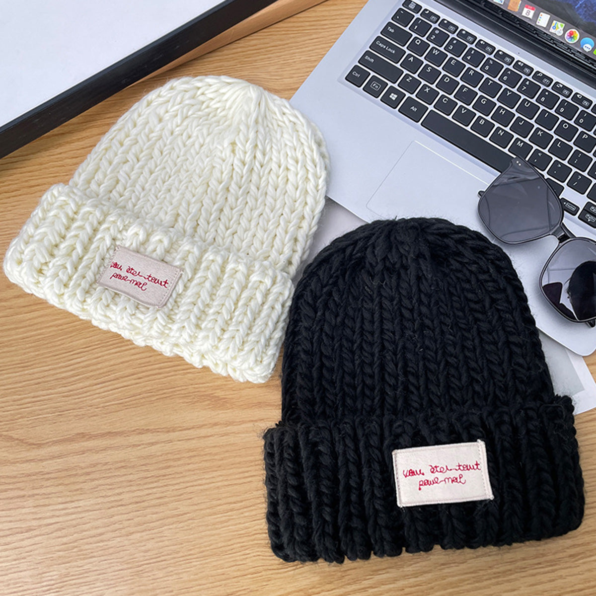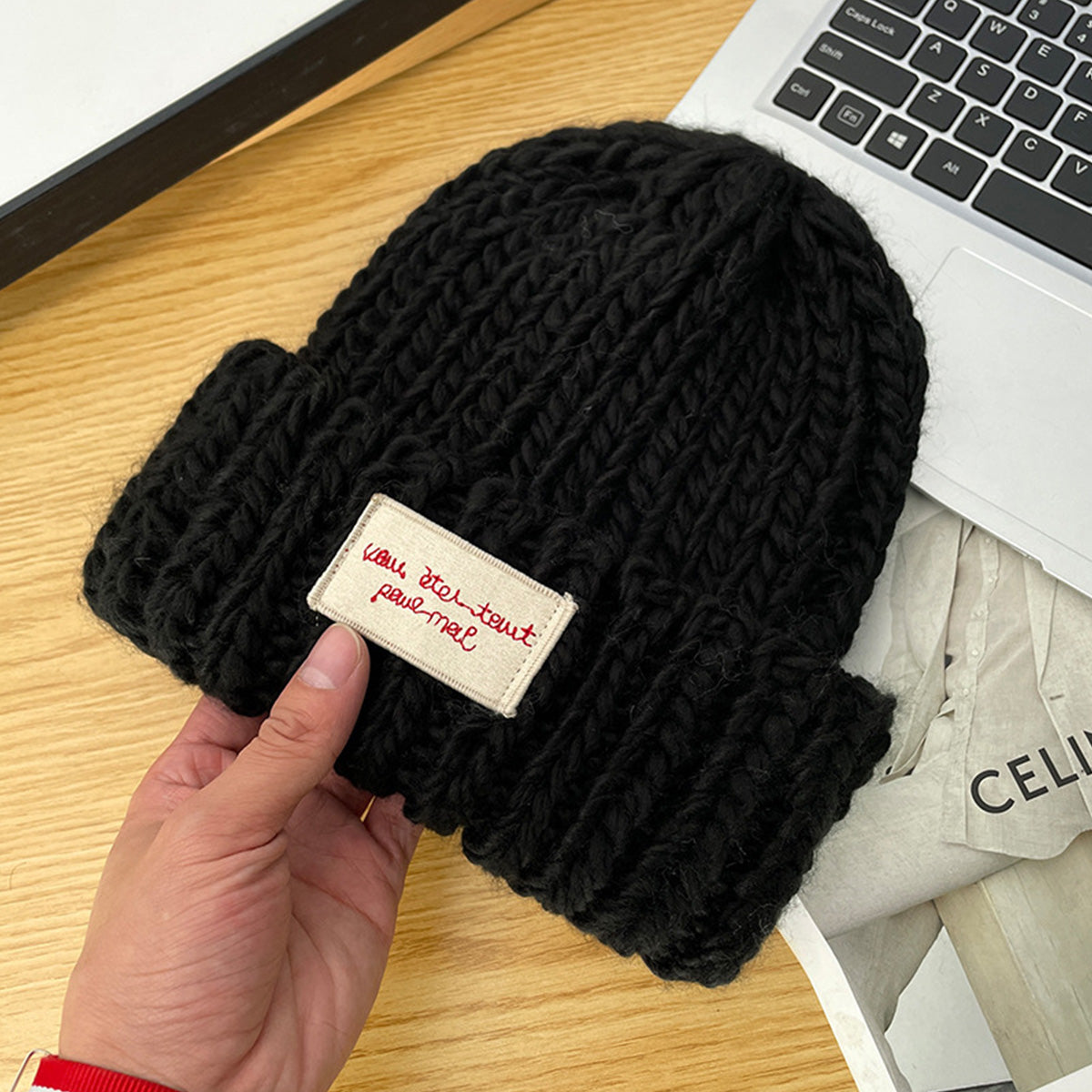 Large head circumference green knitted hat for women in winter Korean style all-match large head thick yarn wool hat for women showing face small cold hat