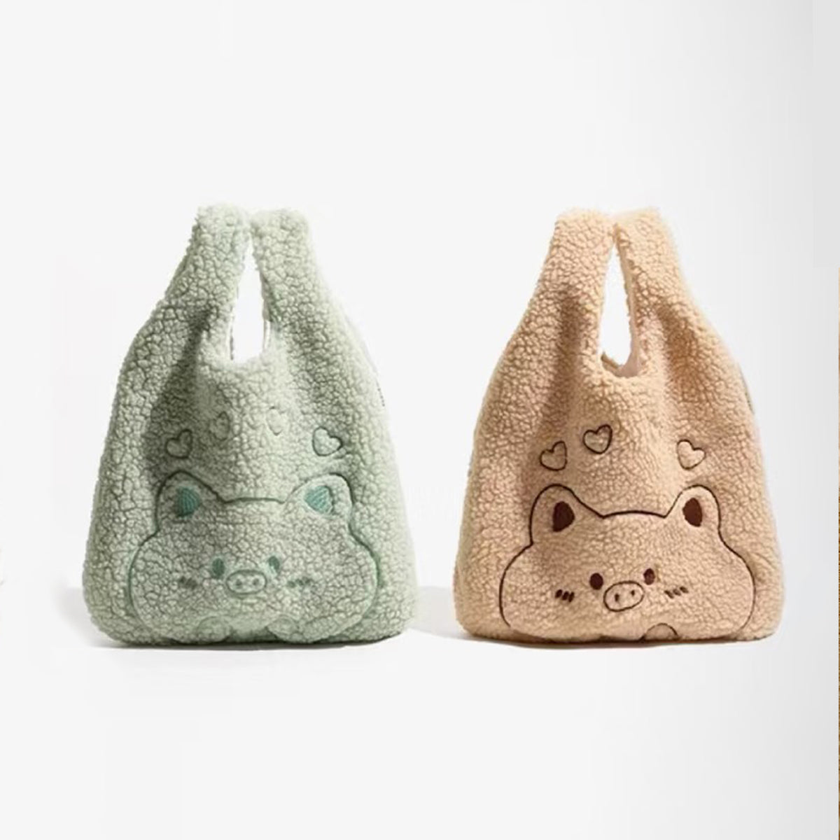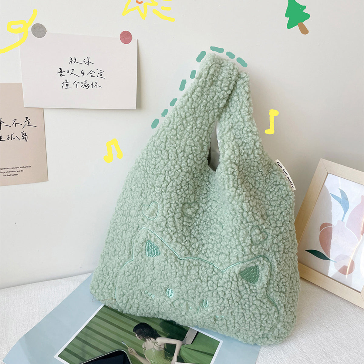 Autumn and Winter New Plush Handbag Cute Embroidered Lamb Hair Wrist Bag Walking Bag