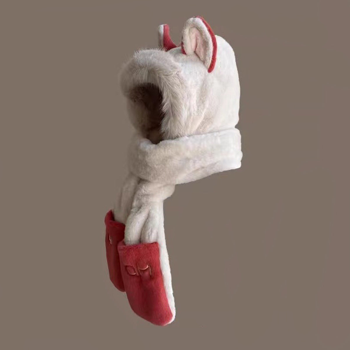 Plush warm scarf three-piece suit for women 2023 new autumn and winter furry cold-proof scarf suit autumn and winter hat